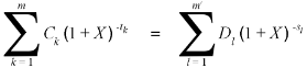 The basic equation, which establishes the annual percentage rate of charge (APR), equates, on an annual basis, the total present value of drawdowns on the one hand and the total present value of repayments and payments of charges on the other hand, i.e.: