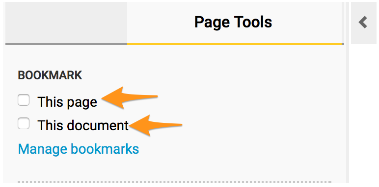 Bookmarks enables quick access to your saved documents or an individual page within a document