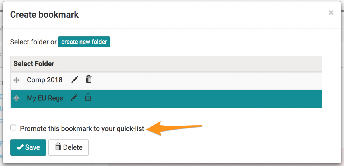 • There is also an option to 'Promote this bookmark to your quick-list'.